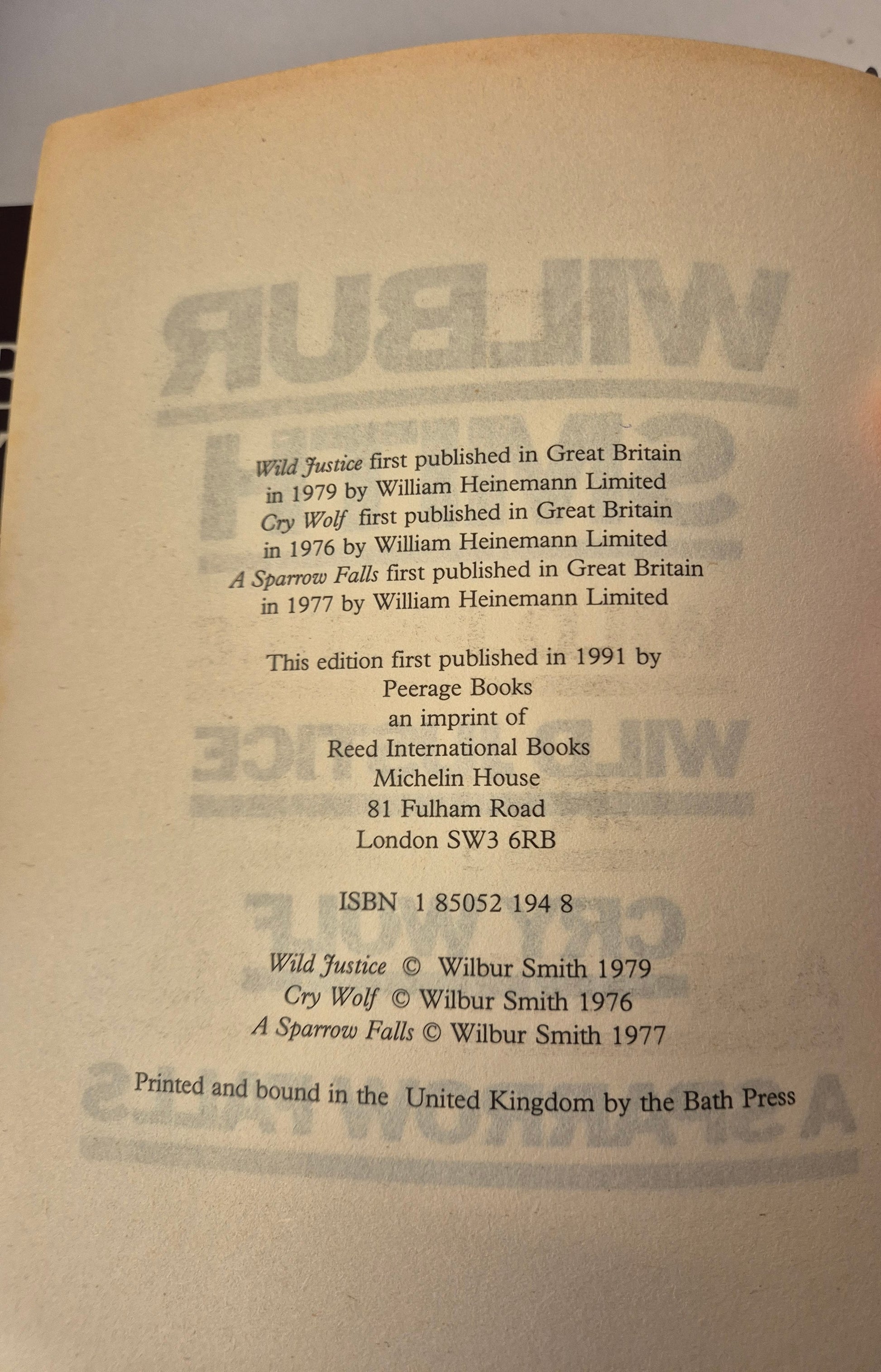 Omnibus: Wild Justice + Cry Wolf + A Sparrow Falls (Courtney publication order #3) by Wilbur Smith