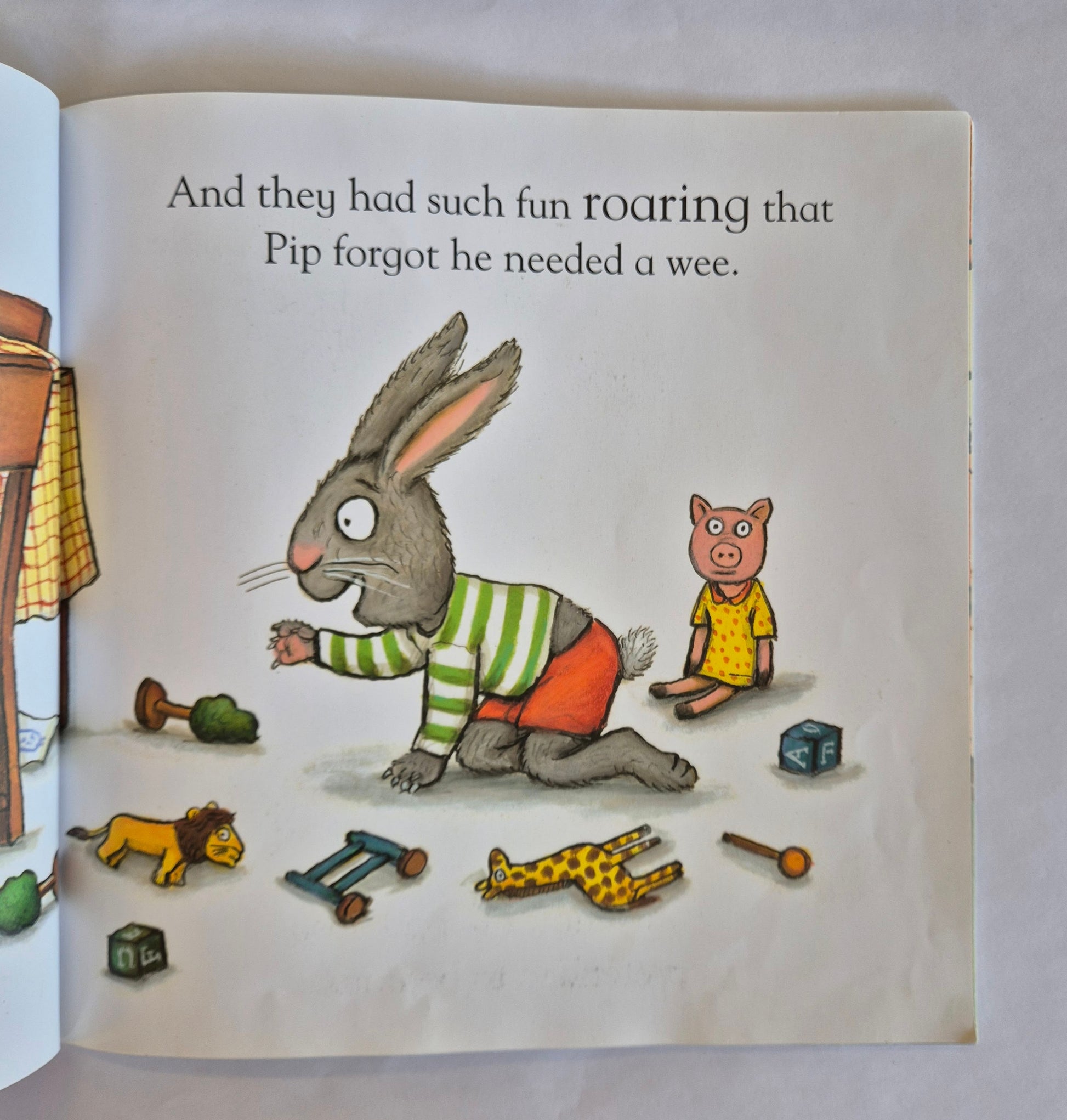 Pip and Posy are having such fun playing that Pip forgets he needs a wee. Soon there is a little puddle on the floor. Oh dear!